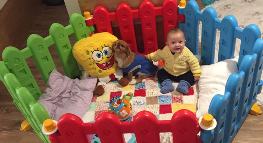 Şımarık, normalde eşime daha düşkündür ama hamileliğim boyunca hiç ayrılmadı yanımdan. Son aylar tansiyonum yüksekti biraz. Onunla bol bol yürüdük, zaten o kucağıma yatınca benim tansiyonum kesin düşüyordu.