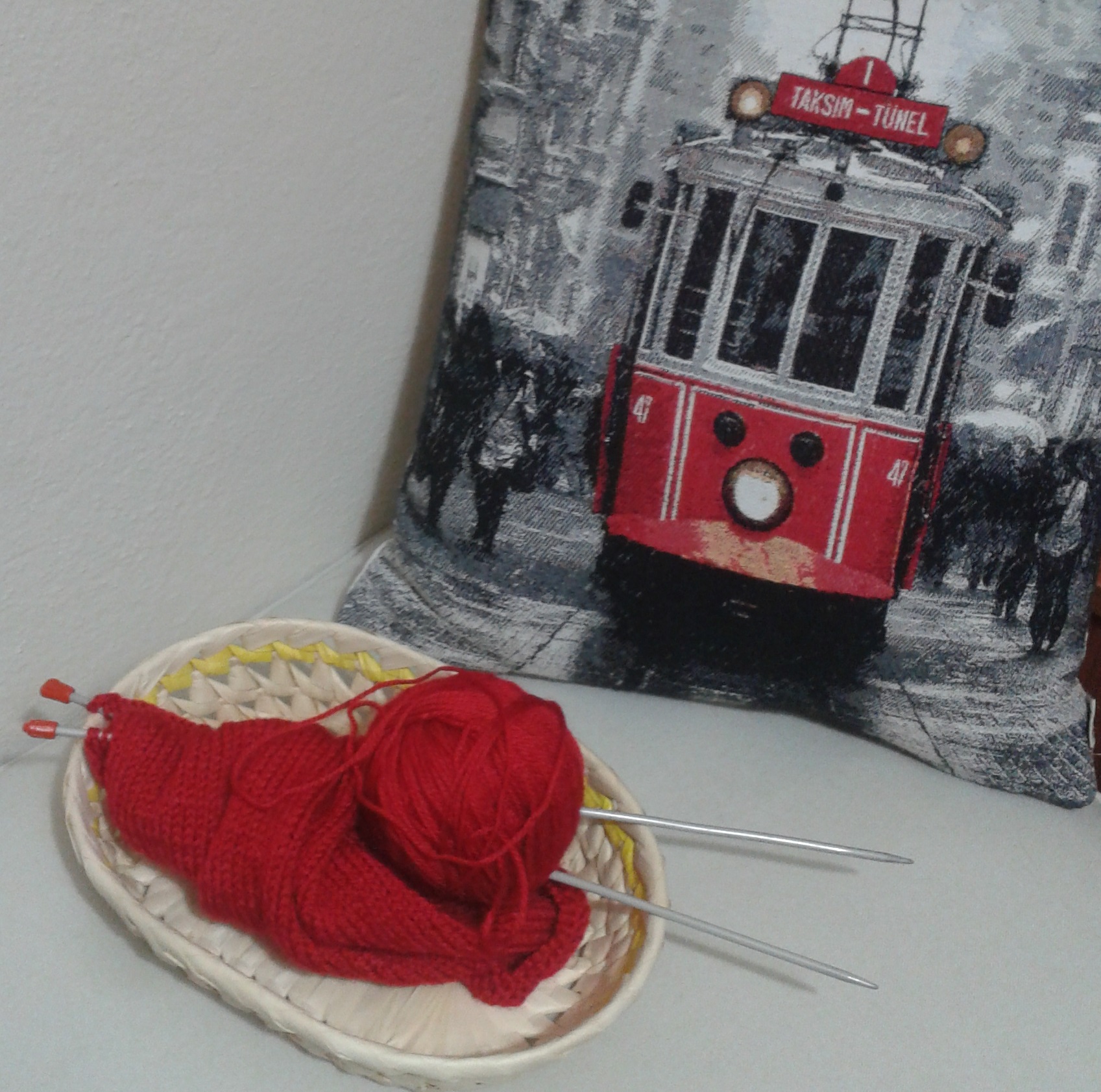 Ve de yeni örmeye başladığım kırmızı kazağım…