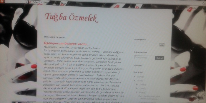 'tugbaozmelek.blogspot.com' adresinde yazılarımı paylaşmaya başlamıştım.